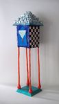 2011Draakachtige Hond met stapeling van Doosachtig Mannetje met CD en een Vogeltje. Het Mannetje is voorzien van een Gedicht van Gaston Bannier.